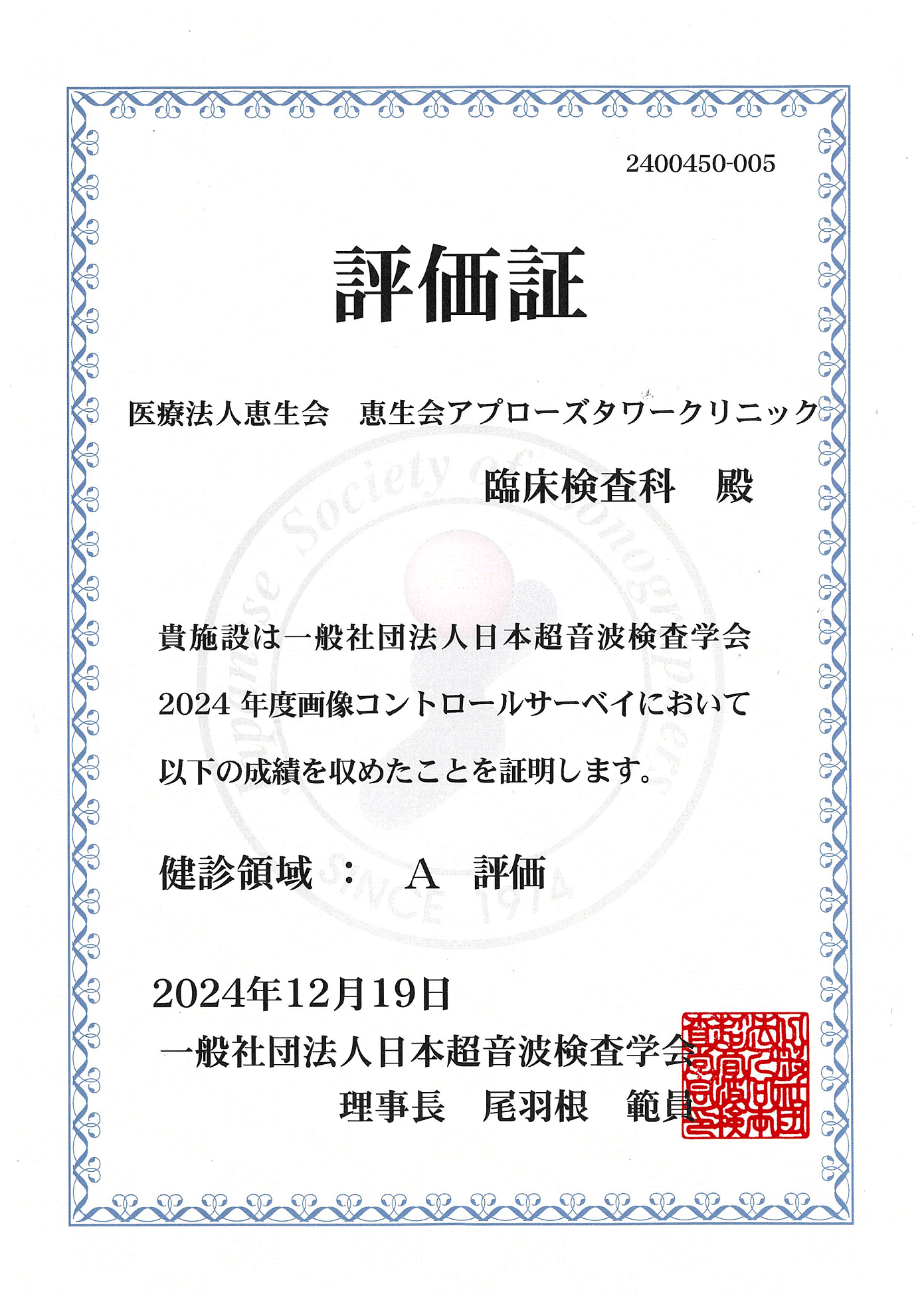 当院では、今年も一般社団法人日本超音波検査学会主催の